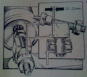 Beim Wiedereinsetzen ist darauf zu achten, dass die Kordelmutter soweit hereingedreht ist, dass sie sich gerade noch in die Aufnahme des Kupplungshebels drücken lässt. Durch die vorhandene Aussparung in der Aufnahme ist dann das vorgeschriebene Spiel von 1,8 bis 2,5mm gegeben. Abschließend ist der Betätigungshebel nach aussen zu ziehen und die Kontermutter wieder anzuziehen.